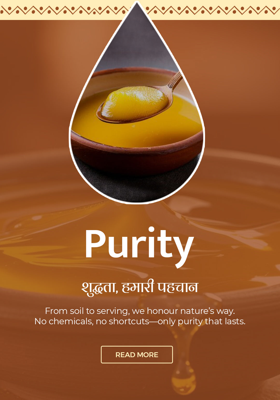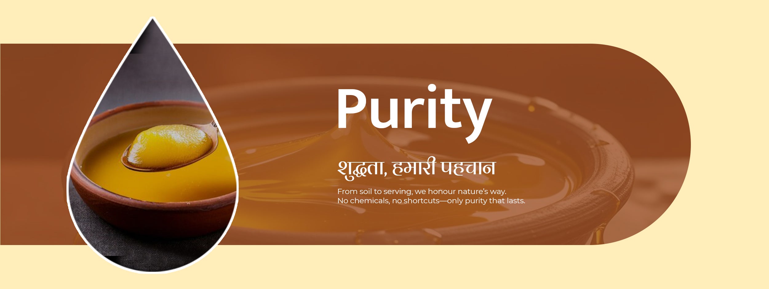 No chemicals, no shortcuts—only purity that lasts.Purity is not just a promise—it’s a practice. From the living soil of Bundelkhand to your kitchen, we grow food with honesty, love, and respect for nature. Free from chemicals and untouched by shortcuts, every product reflects the pride we take in staying true to our roots. We don't just grow food. We preserve purity—for today, and for generations to come.