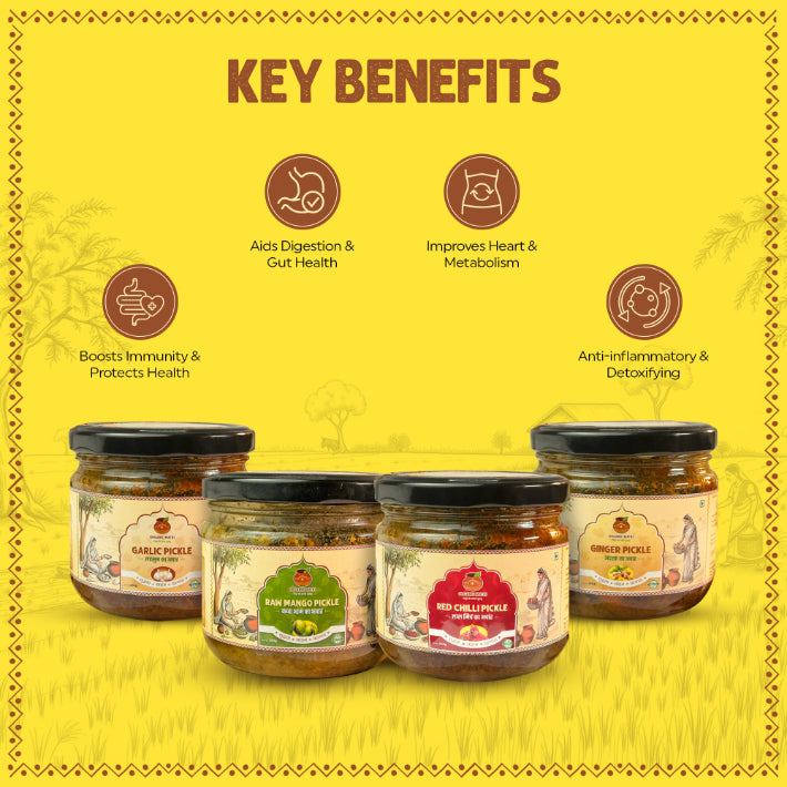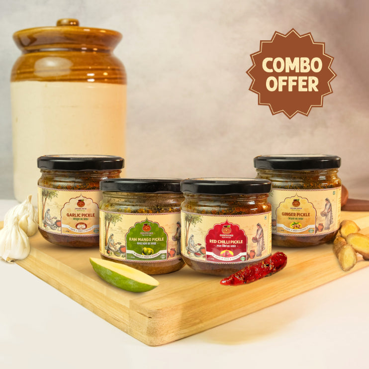 Bring home the authentic taste of Bundelkhand with this specially curated pickle combo. This pack includes: