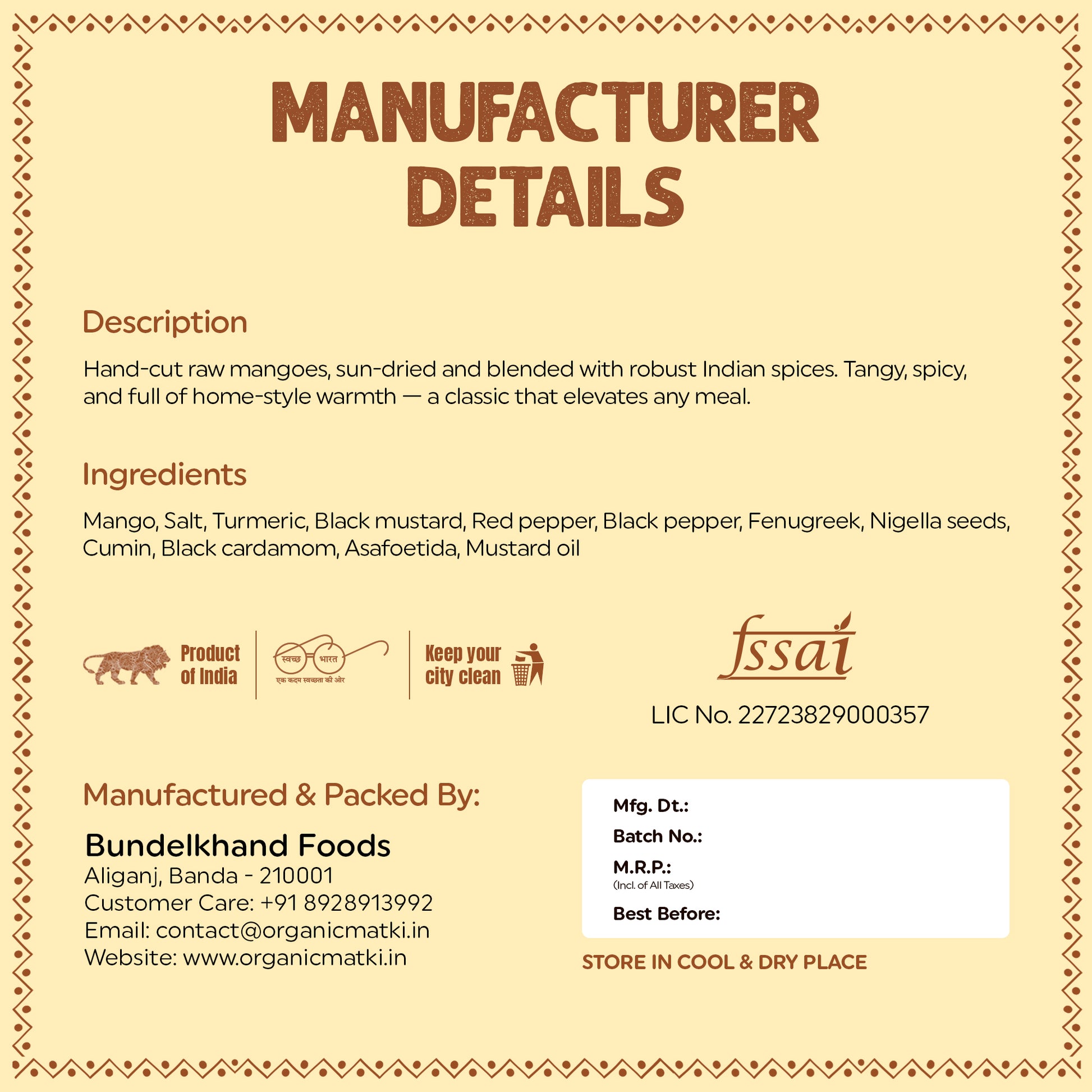 Hand-cut raw mangoes, sun-dried in the Bundelkhandi sun and blended with bold Indian spices.